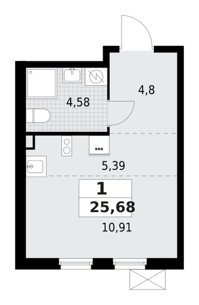 | 25.68 м2 | — | 5.39 м2 | 2 | ![]() |