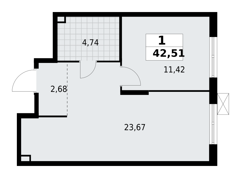 | 42.51 м2 | — | 23.67 м2 | 2 | ![]() |