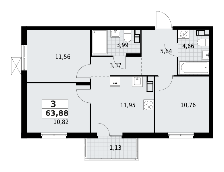 | 63.88 м2 | — | 11.95 м2 | 3 | ![]() |