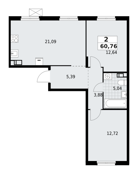 | 60.76 м2 | — | 21.09 м2 | 3 | ![]() |