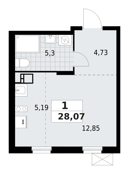 | 28.07 м2 | — | 5.19 м2 | 3 | ![]() |