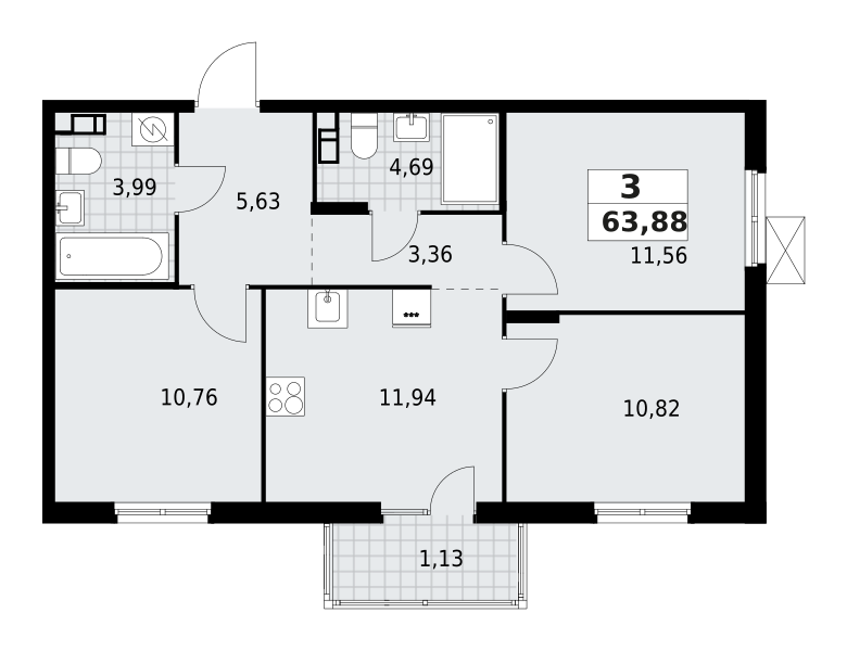 | 63.88 м2 | — | 11.94 м2 | 3 | ![]() |