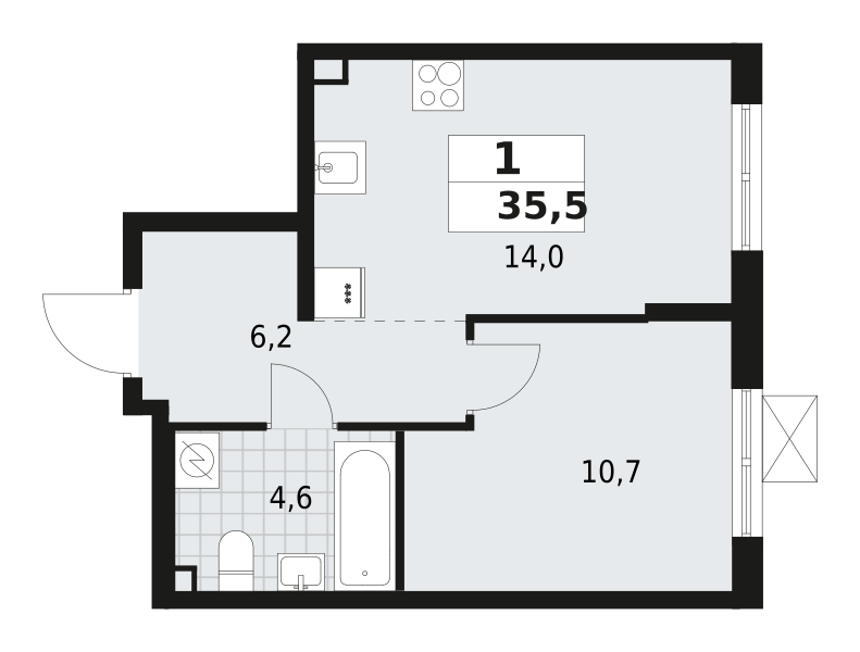 | 35.5 м2 | — | 14 м2 | 2 | ![]() |